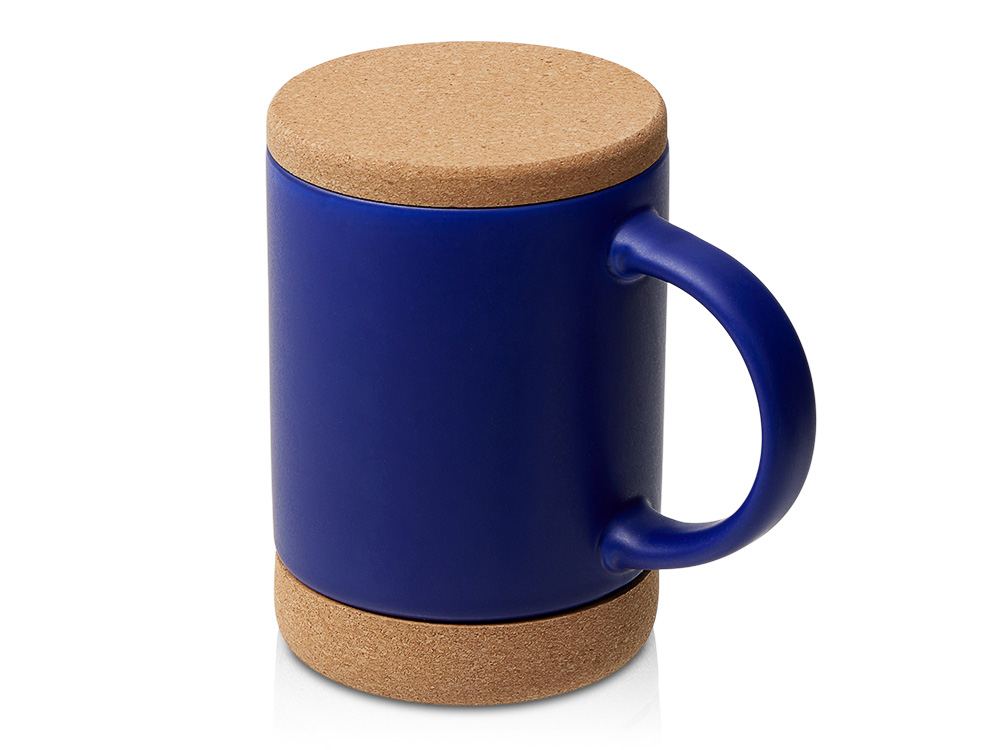 Кружка 450 мл с пробковым дном с крышкой "Корк & Бон", глубокий синий