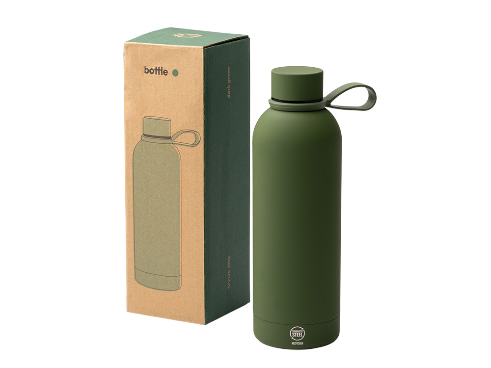 Термобутылка из переработанной нержавеющей стали 500 мл Сивас (SIVAS), темно- зеленый