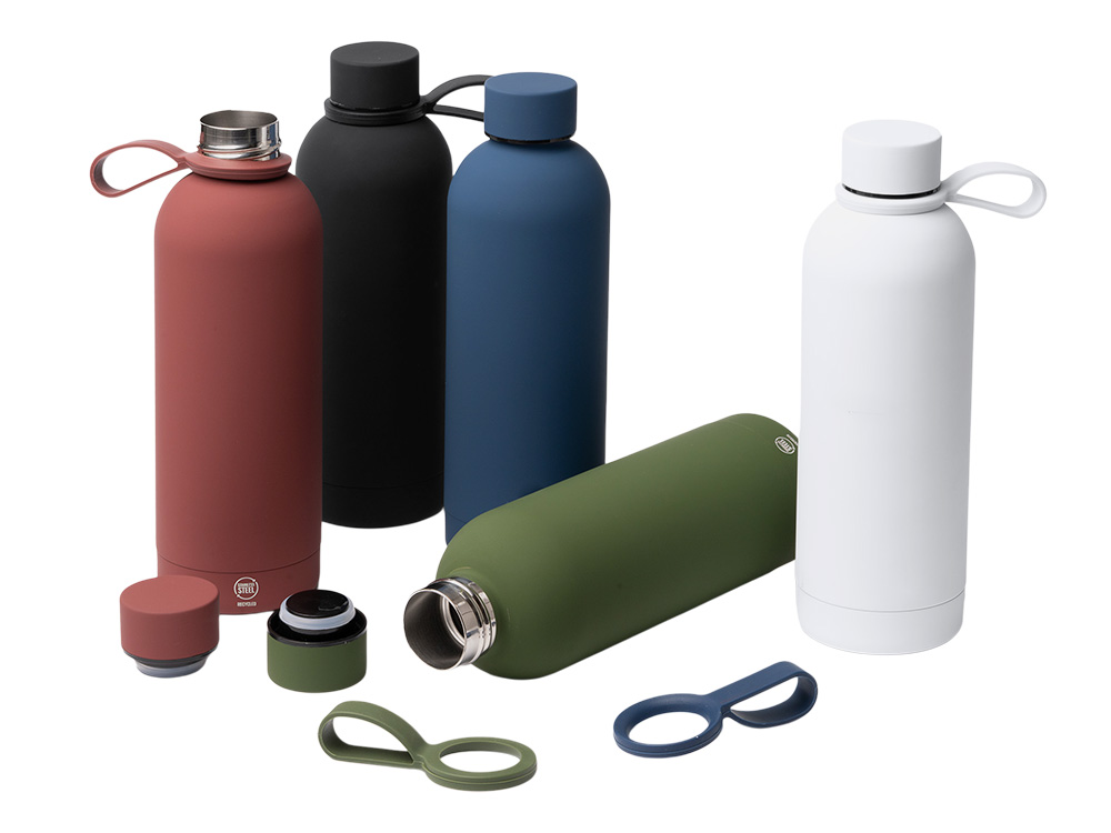 Термобутылка из переработанной нержавеющей стали 304. Мягкая прорезиненная поверхность на корпусе. Удобная силиконовая ручка для переноски. Оснащена противокапельной системой благодаря силиконовому кольцу, встроенному во внутреннюю часть крышки. Крышка и ручка соответствуют цвету корпуса. Объем: 500 мл. - Переработанная нержавеющая сталь 304 - Защита от капель - Нельзя мыть в посудомоечной машине - Поставляется в эко коробке